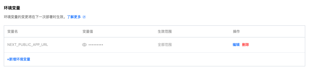 您对环境变量的任何更改将不会影响之前的部署,这些更改仅适用于新的部署。