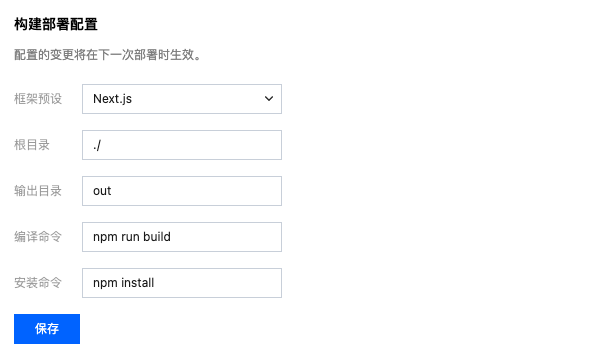 Pages 会根据所选框架自动设置构建命令,例如