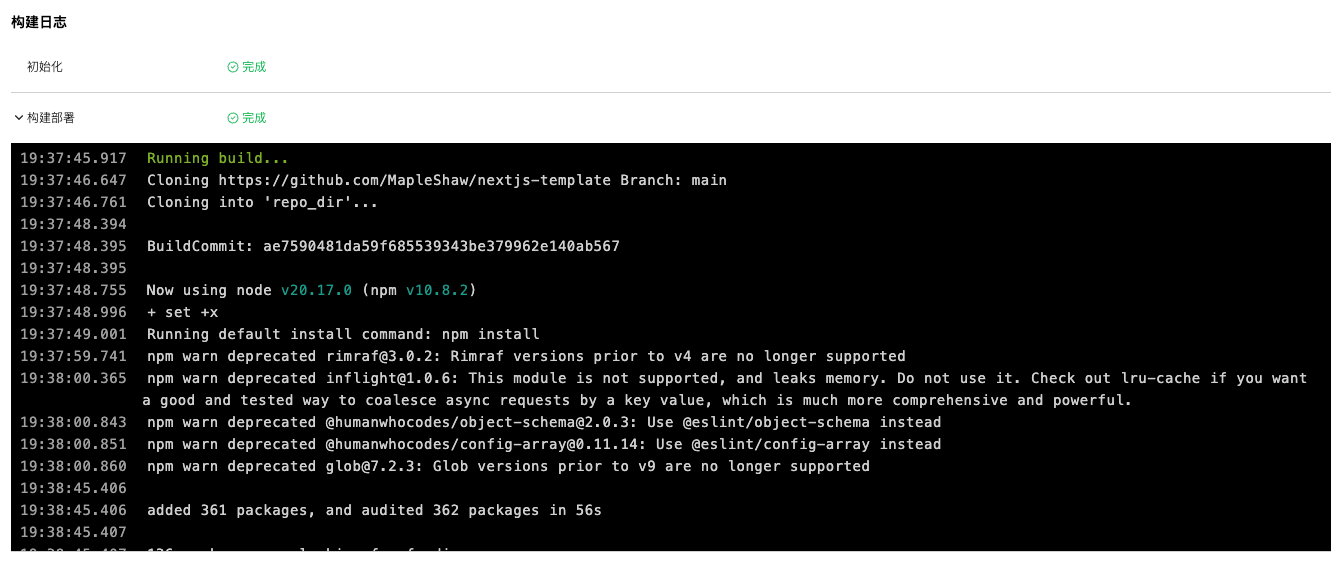 为提高存储容量的利用效率,当成功状态的部署记录超过十条时,系统会自动清理最早的部署记录对应的构建产物。您可以通过「重新部署」功能,以该部署的配置新创建一个部署,从而恢复失效部署的访问。