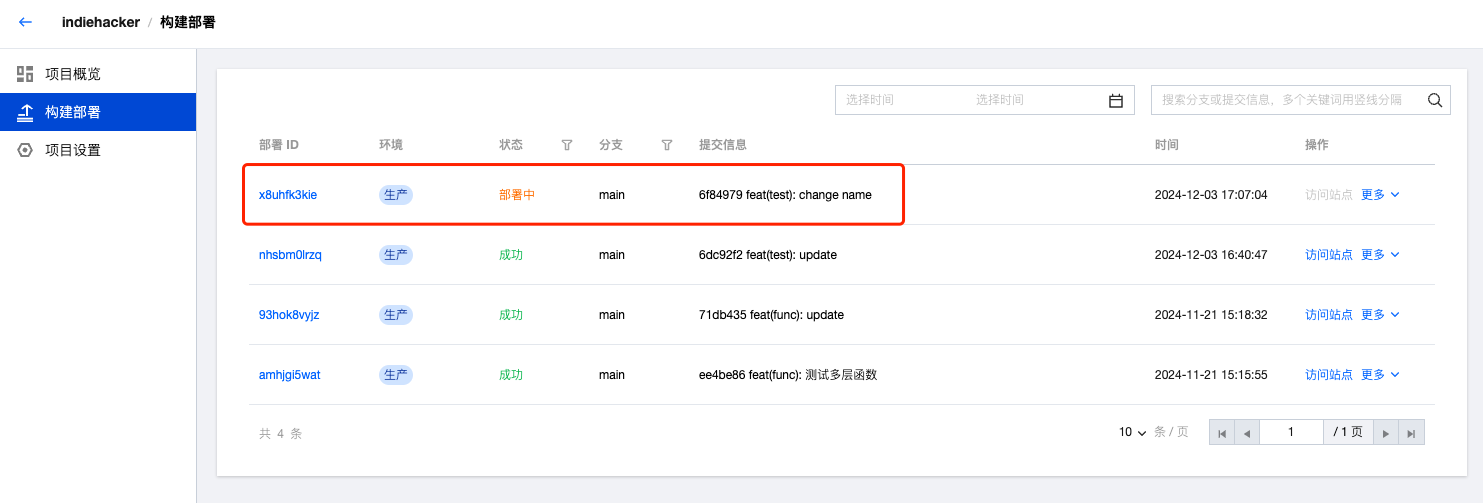 当新的提交推送到部署分支时,EdgeOne 将自动拉取并部署最新的提交。