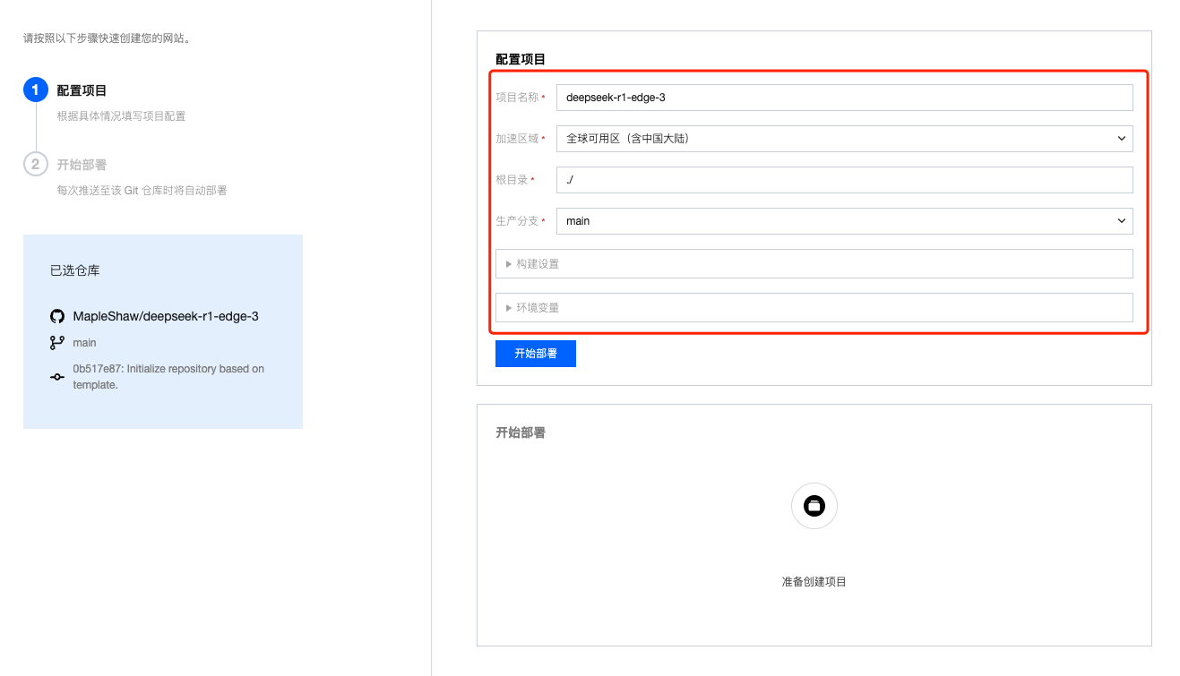 点击“开始部署”。