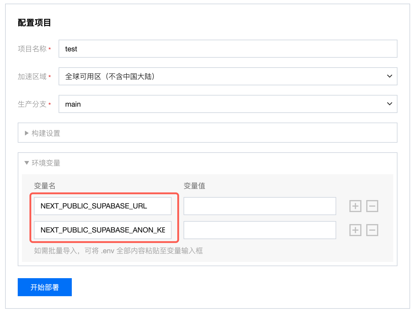 .env.local 中的变量名保持一致,再填写变量值。