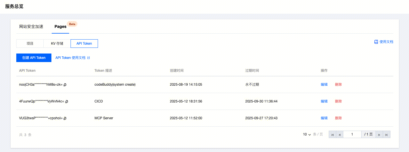 1. 访问 EdgeOne 控制台,切换至 “API Token”。