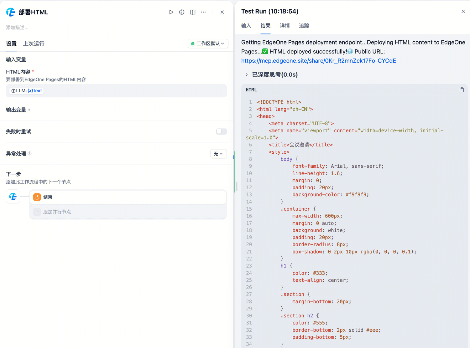 我们很高兴宣布,腾讯云 EdgeOne Pages 插件现已在 Dify Marketplace 上线。这款强大的部署插件支持用户将 ZIP 文件和 HTML 文件即时发布为可公开访问的 URL,为快速原型验证和 MVP 测试提供无缝解决方案。
